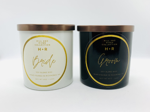 Make your special day even more unforgettable with a custom candle from the Hill and River Collection.
